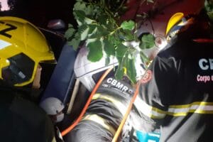 Caminhão que transportava camionete atinge árvore em Progresso e deixa duas pessoas feridas