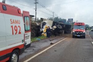 Uma carreta que transportava farelo tombou na manhã desta sexta-feira, na BR-386, na altura de Santa Rita, em Estrela. O…