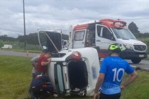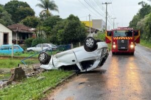 Jovens capotam carro, batem em concreto e ficam feridos, em Campo Largo