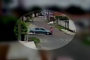 Uma câmera de segurança flagrou o momento em que uma mulher vestida de palhaça foi atropelada por um carro, nesta…