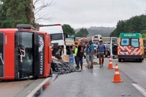 Um tombamento de um caminhão no quilômetro 88 no Contorno Leste, na BR-116, em Piraquara, Região Metropolitana de Curitiba (RMC),…