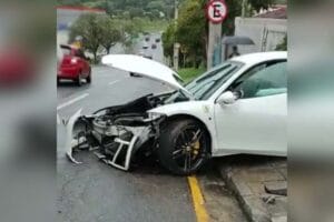 Imagens de uma Ferrari 458 Itália, de cor branca, acidentada na Rua São João, bairro Santa Cândida, em Curitiba, viralizaram…