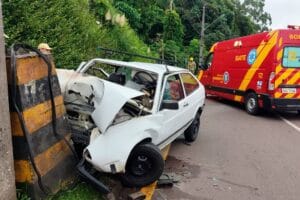 Carros batem em cruzamento no Juvevê, e mulher sofre ferimentos na cabeça: “Alguém entrou na frente do outro”