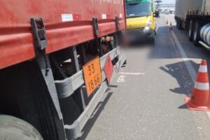 Homem encapuzado e com tornozeleira eletrônica é atropelado por caminhão na BR-116