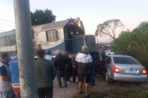 Motorista ignora sinal sonoro e tem carro atingido por trem em Almirante Tamandaré