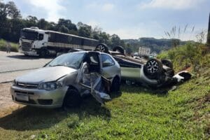 Um carro capotou após se envolver em uma batida com outro automóvel no Contorno Norte, em Almirante Tamandaré, na Região…