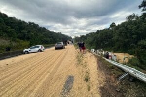 Motorista de bitrem carregado de soja morre na BR-376 após bater e cair em ribanceira