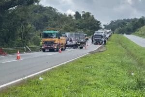 Incêndio em caminhão interdita trecho da BR-116, em São José dos Pinhais
