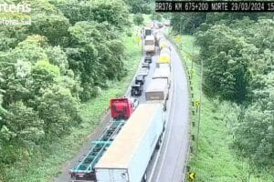 O tombamento de um caminhão e um incêndio em uma carreta bloquearam ambos os sentidos da BR-376, em Guaratuba, no…
