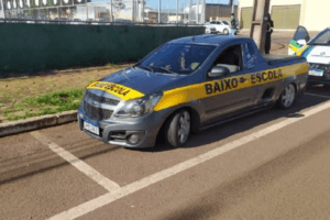 Camionete com adesivo “baixo escola” é apreendida por agentes de trânsito