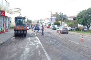Reparos no asfalto deixam trânsito parcialmente bloqueado no centro de Camaquã