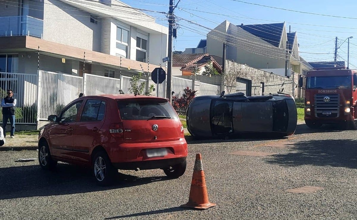 Três pessoas levaram um baita susto num acidente entre um Logan e um Fox no bairro Bom Retiro, em Curitiba, na manhã desta segunda-feira (15). Após a colisão, o Logan chegou a tombar. Uma câmera de segurança de uma casa registrou o momento do acidente. Veja o vídeo abaixo.