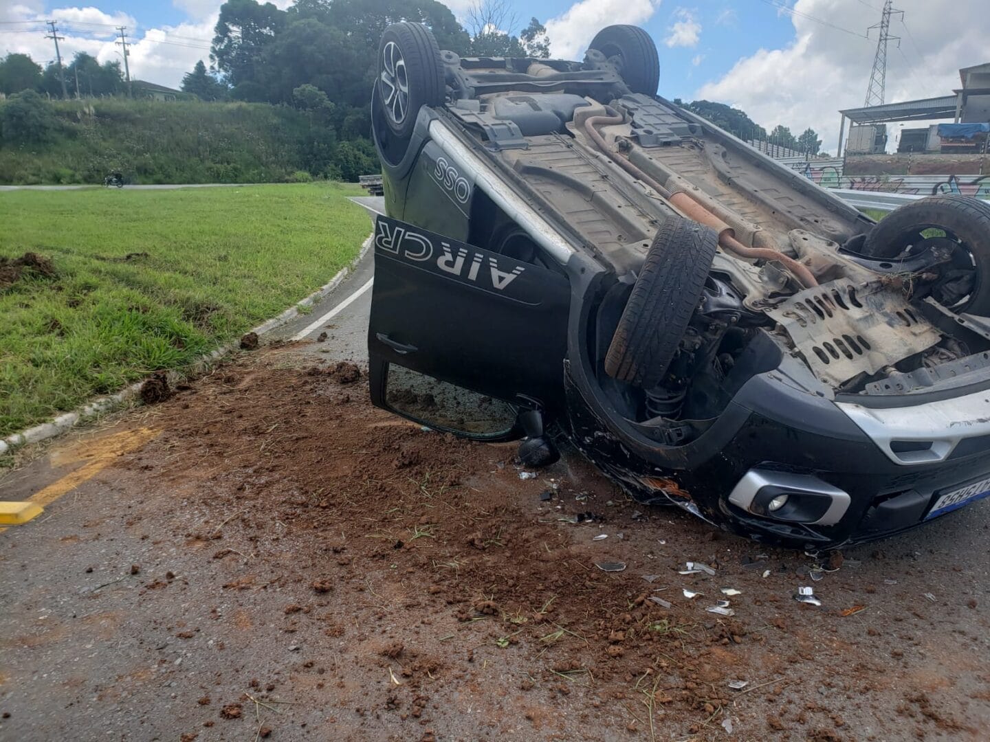 Uma jovem, de 19 anos, saiu ilesa de um capotamento no Contorno Norte de Curitiba, no bairro São Braz, no início da tarde deste sábado (4). Segundo a motorista, ela foi fechada por um caminhão e perdeu o controle do veículo.