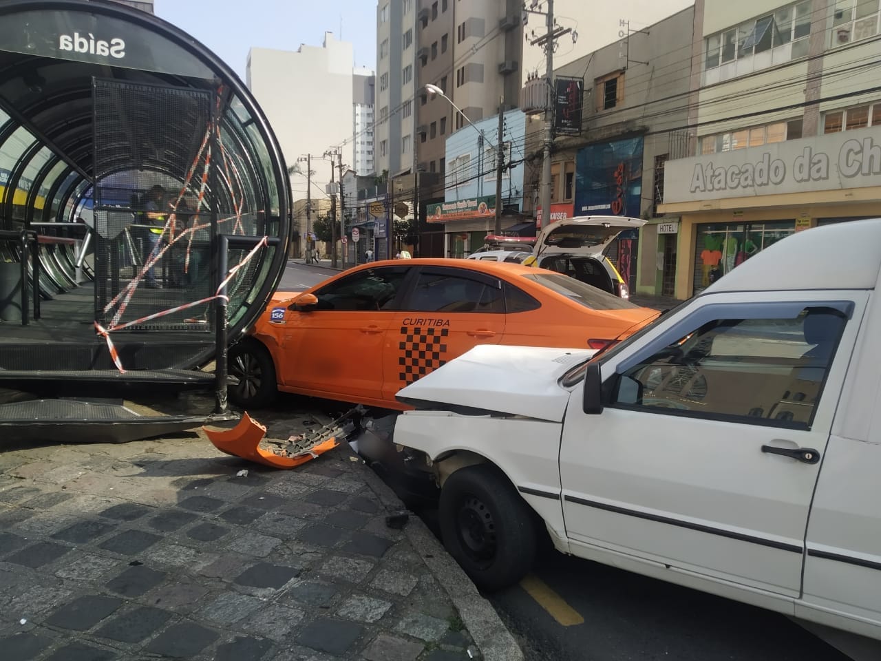 Motorista abandona carro depois de bater em táxi e estação-tubo no Centro: “Apresentava sinais de embriaguez”