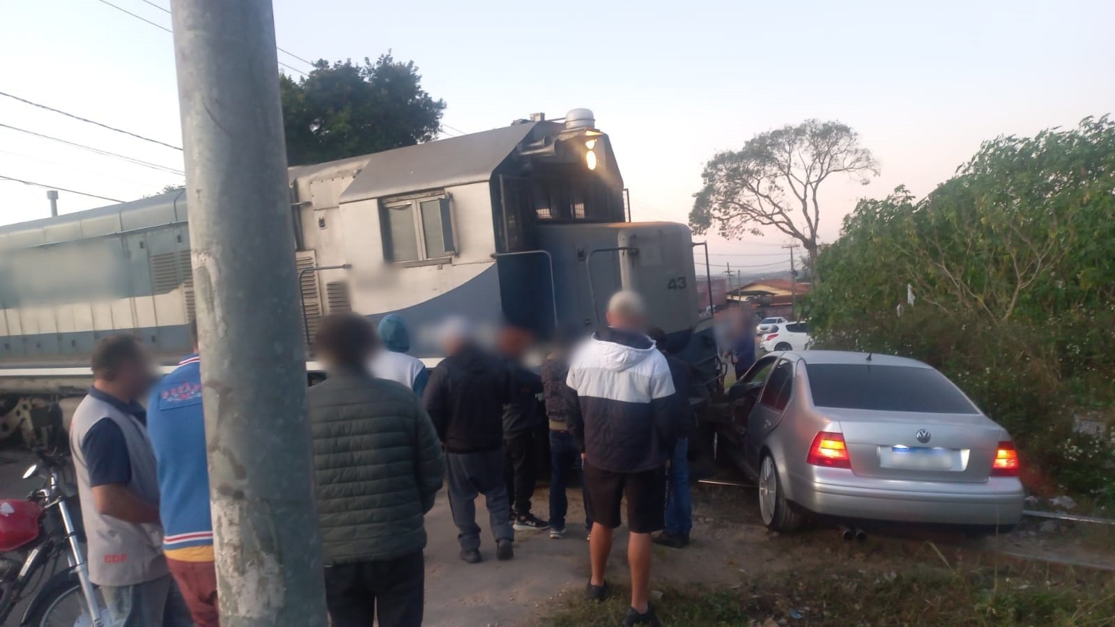 Um carro foi atingido por um trem na tarde desta quarta-feira (17) em Almirante Tamandaré, na região metropolitana de Curitiba.