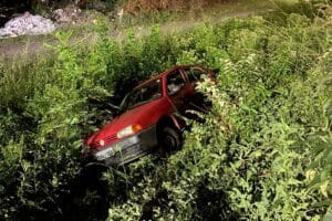 Carro vai parar em valão após acidente na RSC-453