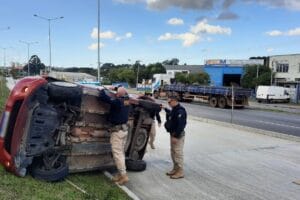 Um acidente entre um caminhão e Renault Sandero deixa o trânsito complicado na Linha Verde, no bairro Bacacheri, em Curitiba,…