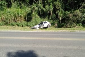 Motorista tomba carro e escapa por pouco de tragédia no Contorno Norte: ‘Deus nos livrou’