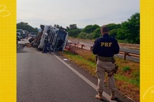 Caminhão carregado com produto corrosivo tomba e faz demais motoristas enfrentarem lentidão na BR-376