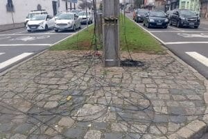 Um motociclista de 24 anos ficou ferido depois que passou e a moto que pilotava se prendeu em cabos no…