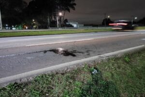 Óleo na pista causa acidente e deixa motociclistas feridos na Linha Verde