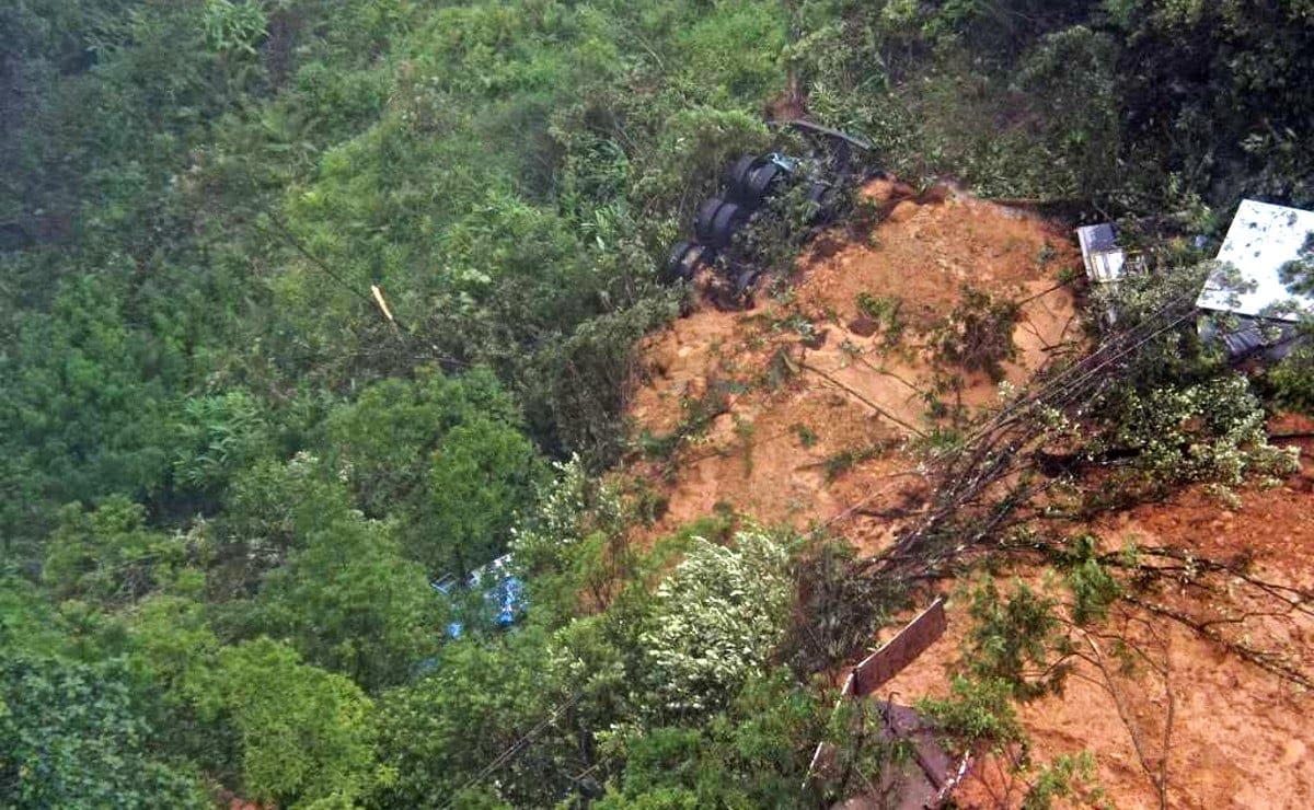 Veja imagens aéreas do ponto onde houve deslizamento na BR-376, em Guaratuba