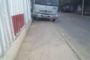 Denúncia: caminhão na calçada coloca pedestres em risco no Rio