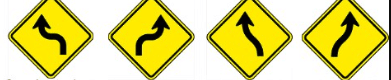 As duas primeiras, consideradas sinalização de perigo à vista, pois as setas apontam que há uma curva acentuada em “S” a frente (à esquerda ou à direita, dependendo do trecho).