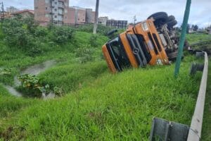 Um caminhão tombado passou a madrugada às margens da BR-277, depois do acidente, que aconteceu na noite de domingo (8)….