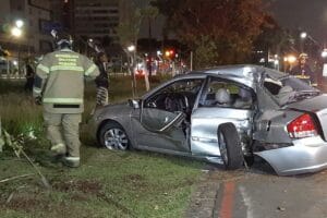 Motorista perde controle da direção em curva de avenida de Curitiba e bate contra árvores