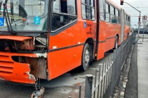 Pedestre é atropelada por biarticulado ao atravessar canaleta no Rebouças