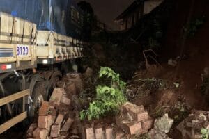Muro cai sobre caminhão e casa corre risco de desabamento em Lajeado