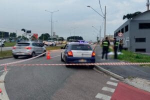 Mulher é atropelada após tentar atravessar faixa de pedestres no Água Verde; motorista fugiu